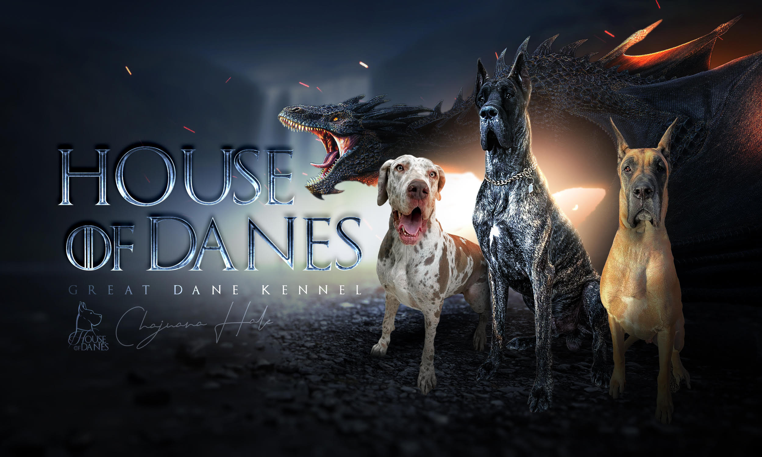Lady Sansa is the most recent member of the House, born on December 29, 2022. She is a 100% American Fawn Great Dane. Lady Sansa is a member of the American Kennel Club. Before she is bred she will be Embark tested for genetic health conditions prone to Great Danes. Lady Sansa is a ball of dragon fire whose energy is unmatched. She enjoys being in a room full of toys and playing tug-of-rope with Lord Forrest.